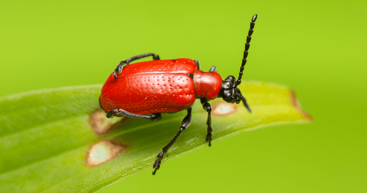 As both larva and adults, the beetles chew holes primarily in lily leaves, but they can also damage stems and flower buds. In a severe infestation, the plant can be defoliated and die.