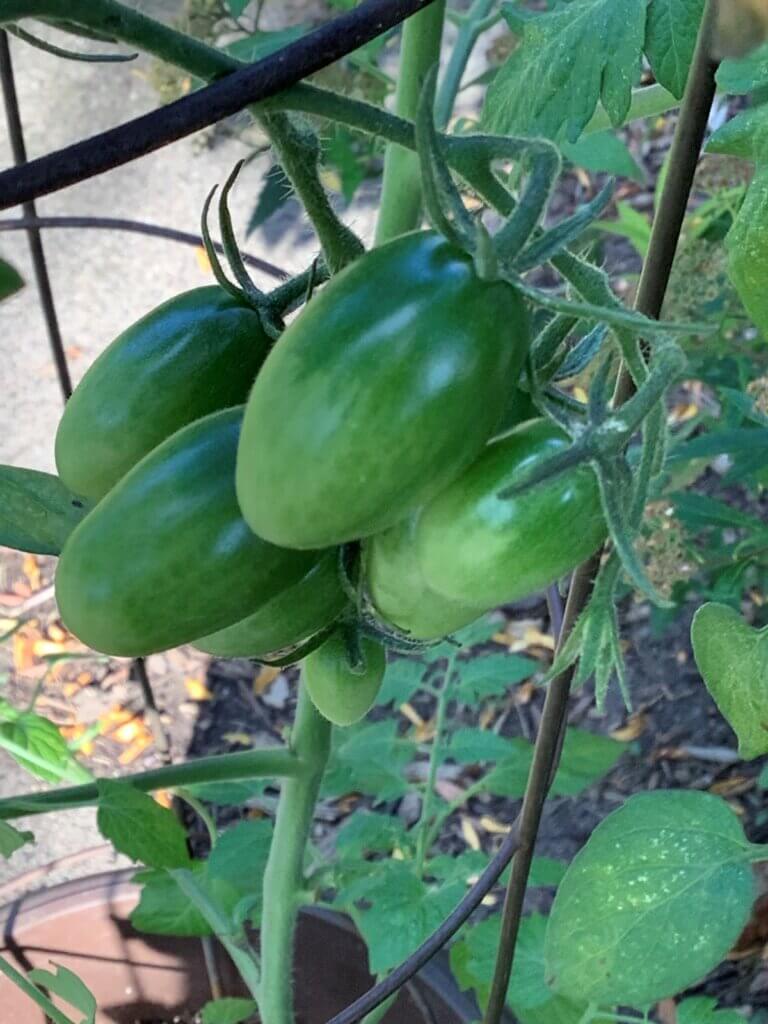 Me: Must have been a squirrel or a bird. Wonder what kind of tomatoes they’ll be? Beefsteak? Cherry? Oooh, San Marzano? What should we call them? Poop-matoes?